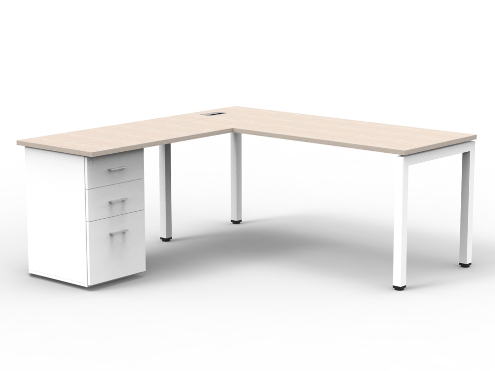 Estación de trabajo Portico con cajonera integrada es un mueble robusto y funcional, ideal para oficinas modernas que priorizan la organización y el diseño eficiente.