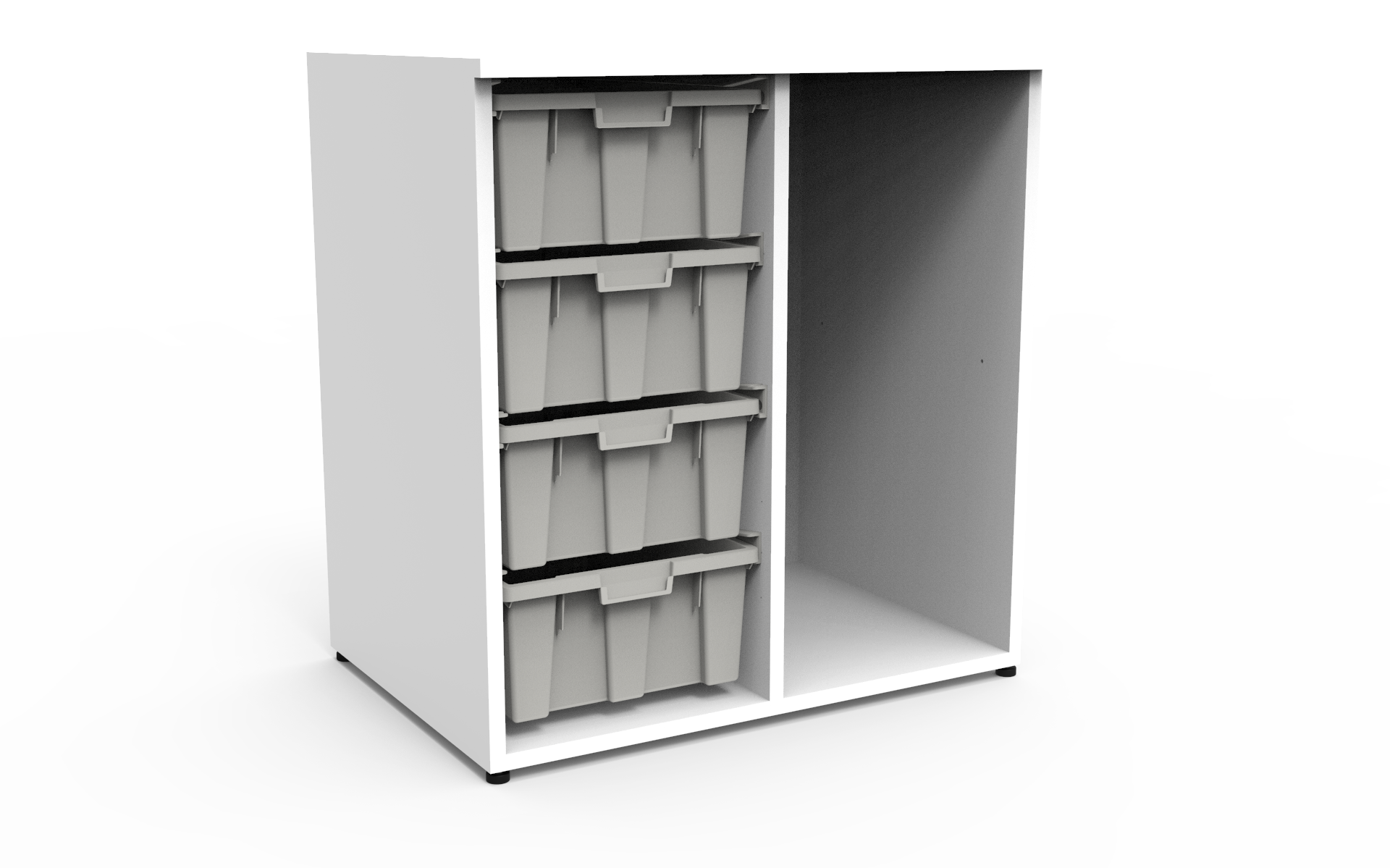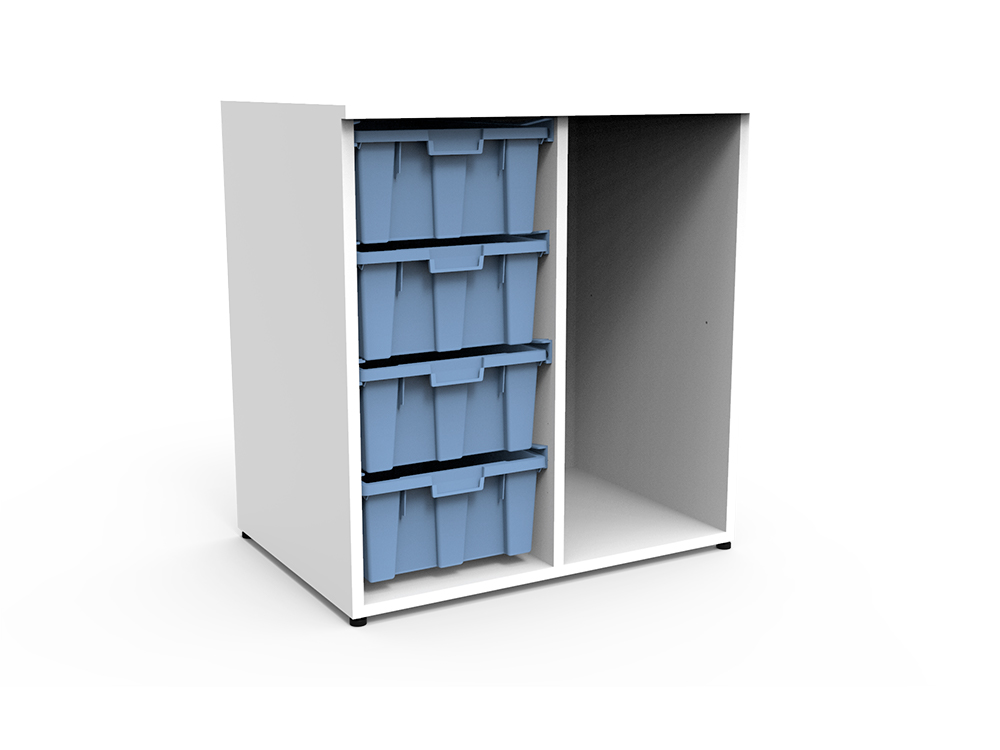 Este mueble organizador cuenta con 4 cajas de almacenamiento grandes, ideal para mantener todo tipo de materiales bien organizados y al alcance.