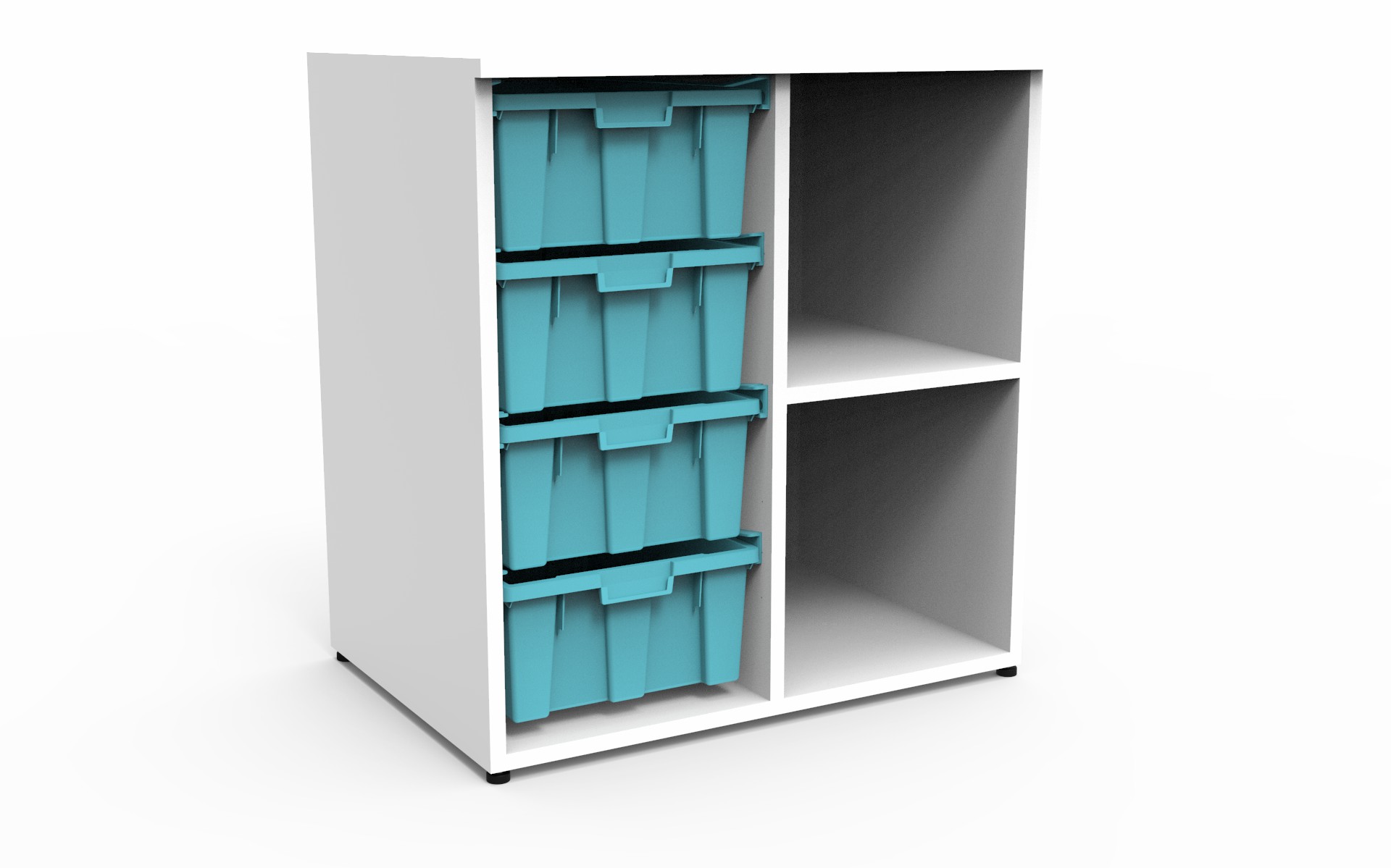 Este mueble organizador cuenta con 4 cajas de almacenamiento grandes, ideal para mantener todo tipo de materiales bien organizados y al alcance.