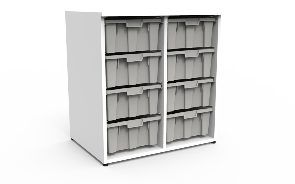 Este mueble organizador cuenta con 8 cajas de almacenamiento grandes, ideal para mantener todo tipo de materiales bien organizados y al alcance.