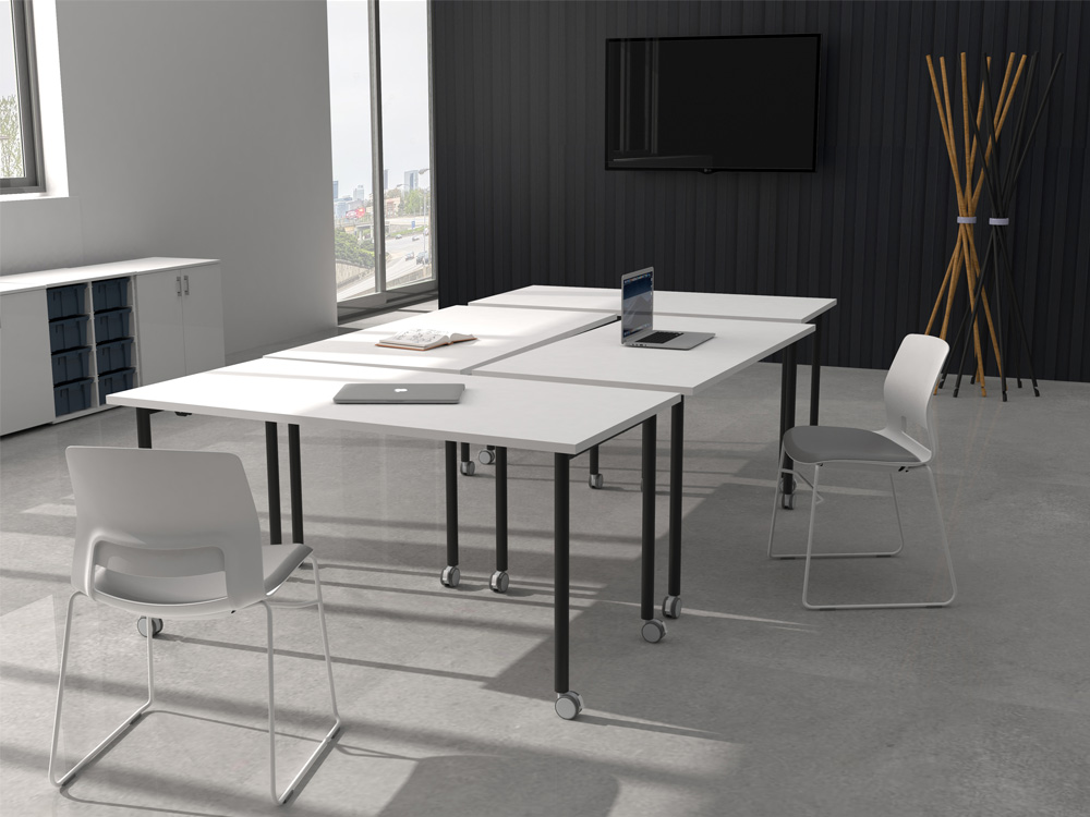 Perfecta para entornos dinámicos como startups, espacios de coworking, o salas de clases universitarias, adaptándose fácilmente a diversas actividades.
