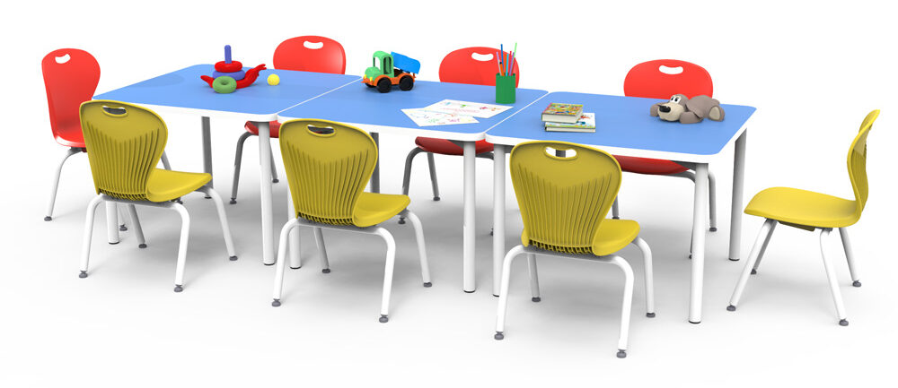 La combinación de acero y MDF asegura una mesa resistente y duradera que puede soportar el uso diario en cualquier entorno educativo.