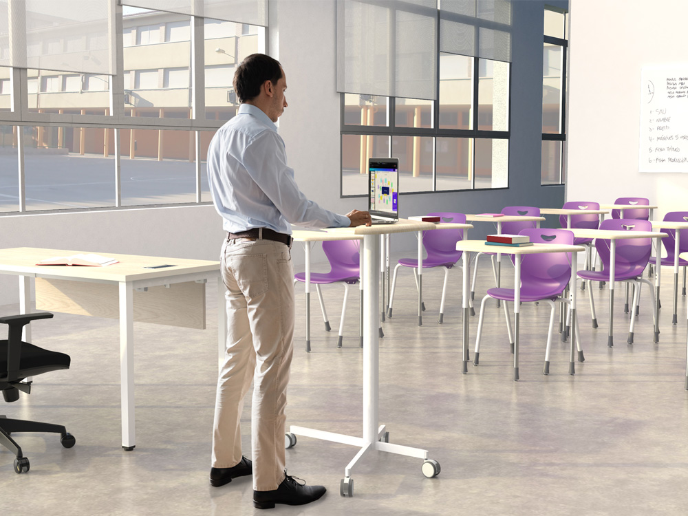 Al tener ruedas, permite su fácil desplazamiento, potenciando el trabajo colaborativo y dinámico.