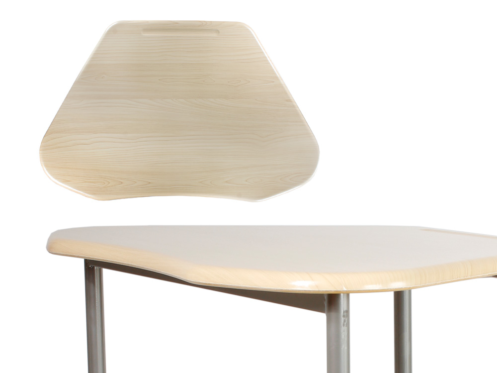 Innovador en diseño, este pupitre trapezoidal facilita el aprendizaje colaborativo y es ideal para entornos educativos modernos.