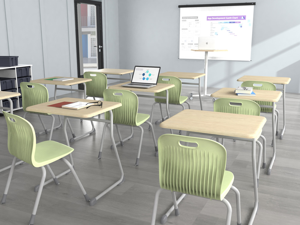Base de la silla fabricada con tubos de acero, terminación termo esmaltado. Terminación de las patas con glide pivotal, permitiendo el perfecto ajuste al piso y entregando estabilidad. Casco fabricado en polipropileno.