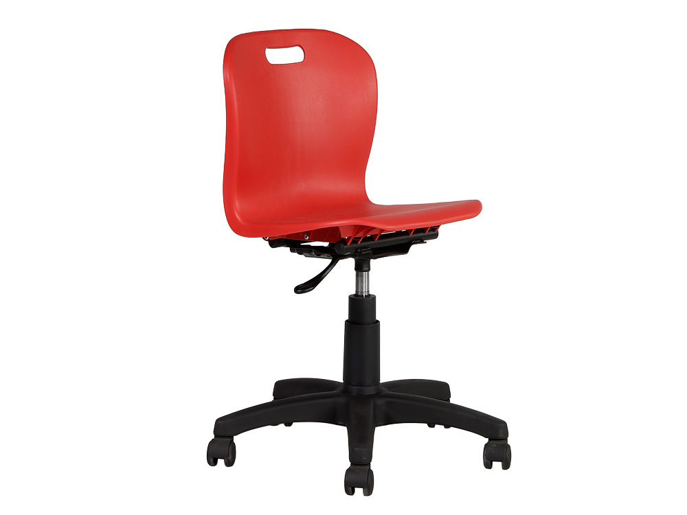 Diseñada para la comodidad y versatilidad en ambientes educativos y de trabajo, esta silla incluye ruedas de PU y una base robusta.