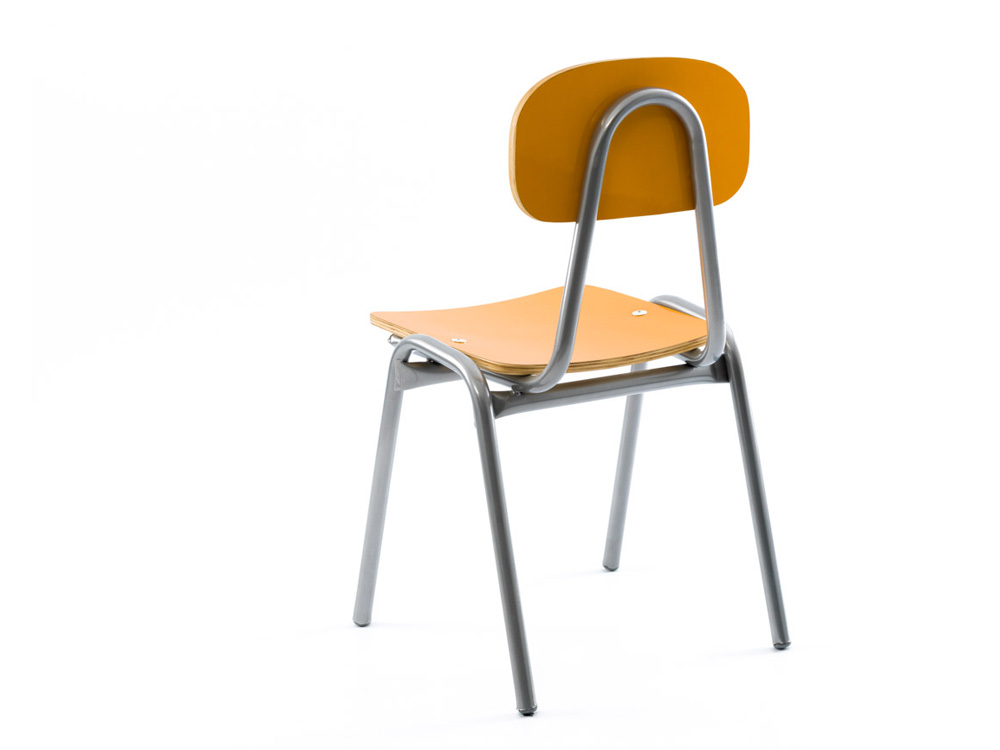 Con un asiento y respaldo de terciado de 8mm, esta silla ofrece una superficie robusta y fácil de limpiar, perfecta para el uso frecuente en entornos educativos.