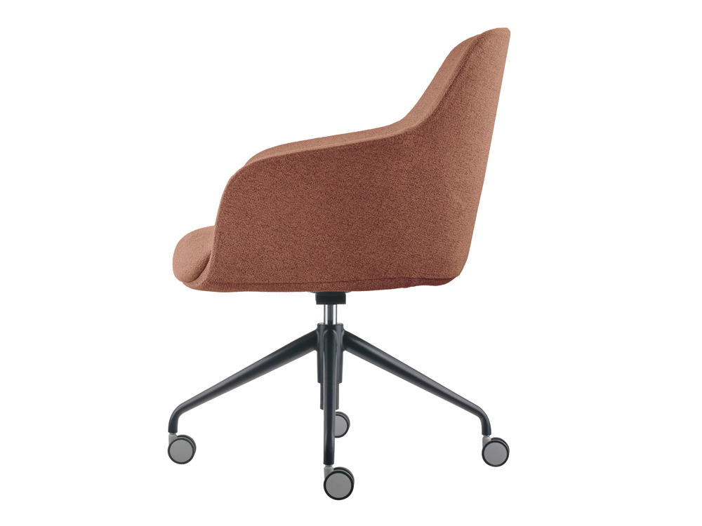 Disponible en beige, gris y coral, la Silla Volga aporta estilo y confort a oficinas y espacios creativos. Sus bases en cuatro puntas o cuatro patas pintadas en negro ofrecen estabilidad y un diseño contemporáneo que se adapta a tus necesidades.